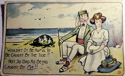 Wouldn't be awful to be caught by the tide? Not so bad as being caught by Ma! |