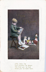 Put your kilts doon, Jock. You'rs a big braw laddie the Noo! Signed "F S"