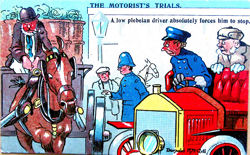 The "Motorist's Trials" cards - on investigation - turn out to be early Donald McGill cards which were later republished by the East London Publishing Co. with less aggressive wording. |