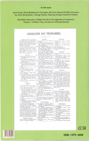 Tring and the Railway: Perhaps the opening words of the abstract "In this topical look at railway and landscape ..." led me to expect more that I found. It discusses the origin of the railway in the first half of nineteenth century from contemporary railway records and if it restricted itself to this period I would be much happier - although I might have expected a mention of the branch line to Aylesbury which passes through through the parish - and was the first ever purpose-built branch line. However it then jumps to the mid 20th century - incorrectly stating the Silk Mill closed sometime after 1956 when it actually closed in 1898, when the building (which still stands) was converted to workshops for the Rothschild estate. Even worse it outrageously suggests that a nearly 20% decrease the population of Tring between 1881 and 1921 was "possibly due to the number of men killed in World War I." (The drop actually happened between 1891 and 1901 due to the boundaries being redrawn.) The article refers to electrification in 1966 and stops there, giving the impression it was written over 40 years ago. There is, for example, no reference to 30 or more books and booklets that have been published relevant to the history of Tring in the last 40 years, or the wealth of information available via modern online census indexes.