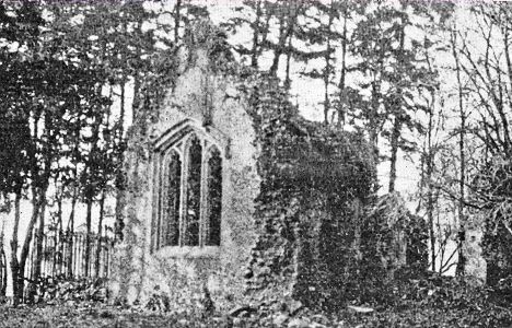 The church of St Mary Magdalene, erected in 1838, chiefly at the cost of the Rev. Samuel King, a former rector, is a plain structure of flint with brick quoins and dressings, and said to have been the first church built by the late Sir Gilbert Scott kt. R.A.; it consists of a nave only, with south porch, vestry, and a western turret containing one bell ... the font and the bell and the floor tiles in the porch were brought from the old church, the slight ruins of which are still standing within a fir plantation in the valley between Latimer and Chenies; it was a cruciform building and very small. ...