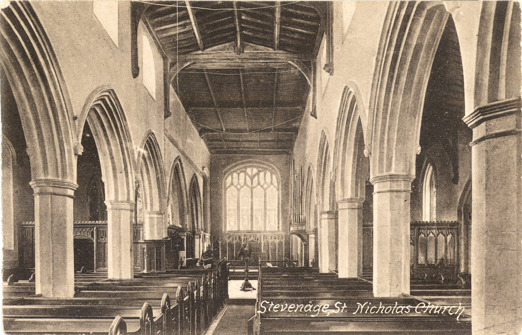 Parish Church, Stevenage W1024 Picture Wrong size Chambers, Publisher, Stevenage - posted 1910 |