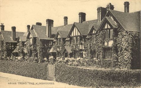 The Almshouses Tring Louisa Cottages front onto Park Road and were build by the Rothschilds. The corner of the first cottage can just be seen in the previous picture. In the 1901 census the occupants were Sarah Nutkins (74, widow of estate labourer), unoccupied, John Horn (77, retired estate labourer), Elizabeth Cross (69, widow of estate labourer) and Thomas Richardson (70, late estate labour). |